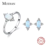 Home Opal Ring MODIAN Authentic 925 Sterling Silver Geometric Rectangle Natural Opal Jewelry Sets Rings Earrings For Women Wedding Jewelry
